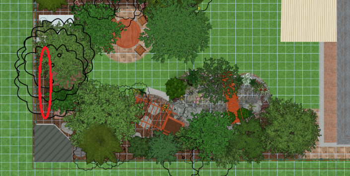 If this tree doesn’t work out it isn’t super important to the design. It just adds balance and shading for a seating area.
