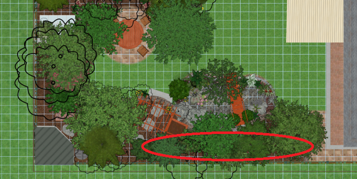 We have planned for a single larger canopy evergreen tree. This is still not a huge tree but can grow a bit larger as it is a reasonable distance from the south boundary fence and expected to provide shade in the south-western corner of our yard year-round creating a shady, cool micro-climate.